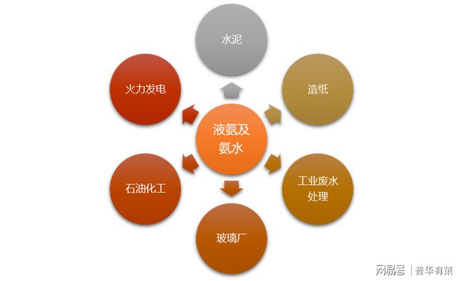 目前液氨及氨水主要应用于水泥厂、火力发电厂、造纸厂、玻璃厂、石油化工等工业烟气脱硝及污水处理,具体如下: